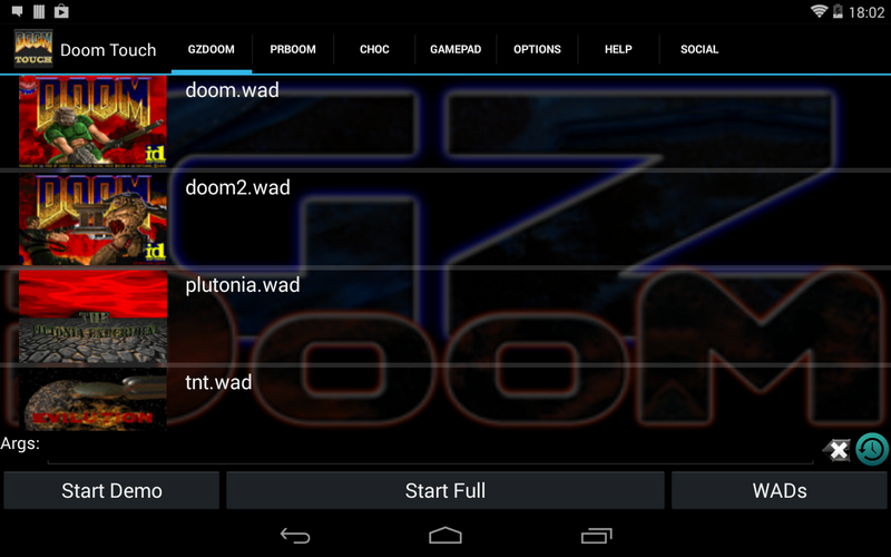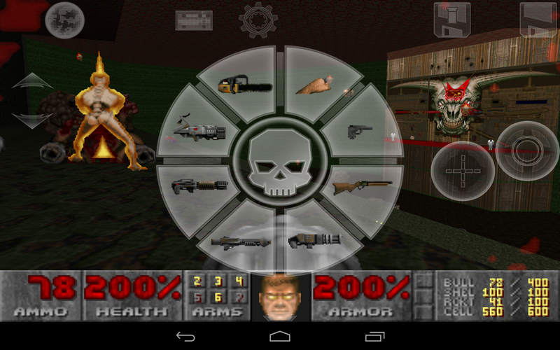 Doom Touch (D-Touch on Google Play) brings three of the best Doom engines to Android, each with their own strengths. Between them you can play all commercial versions of Doom and most custom mods and wads.